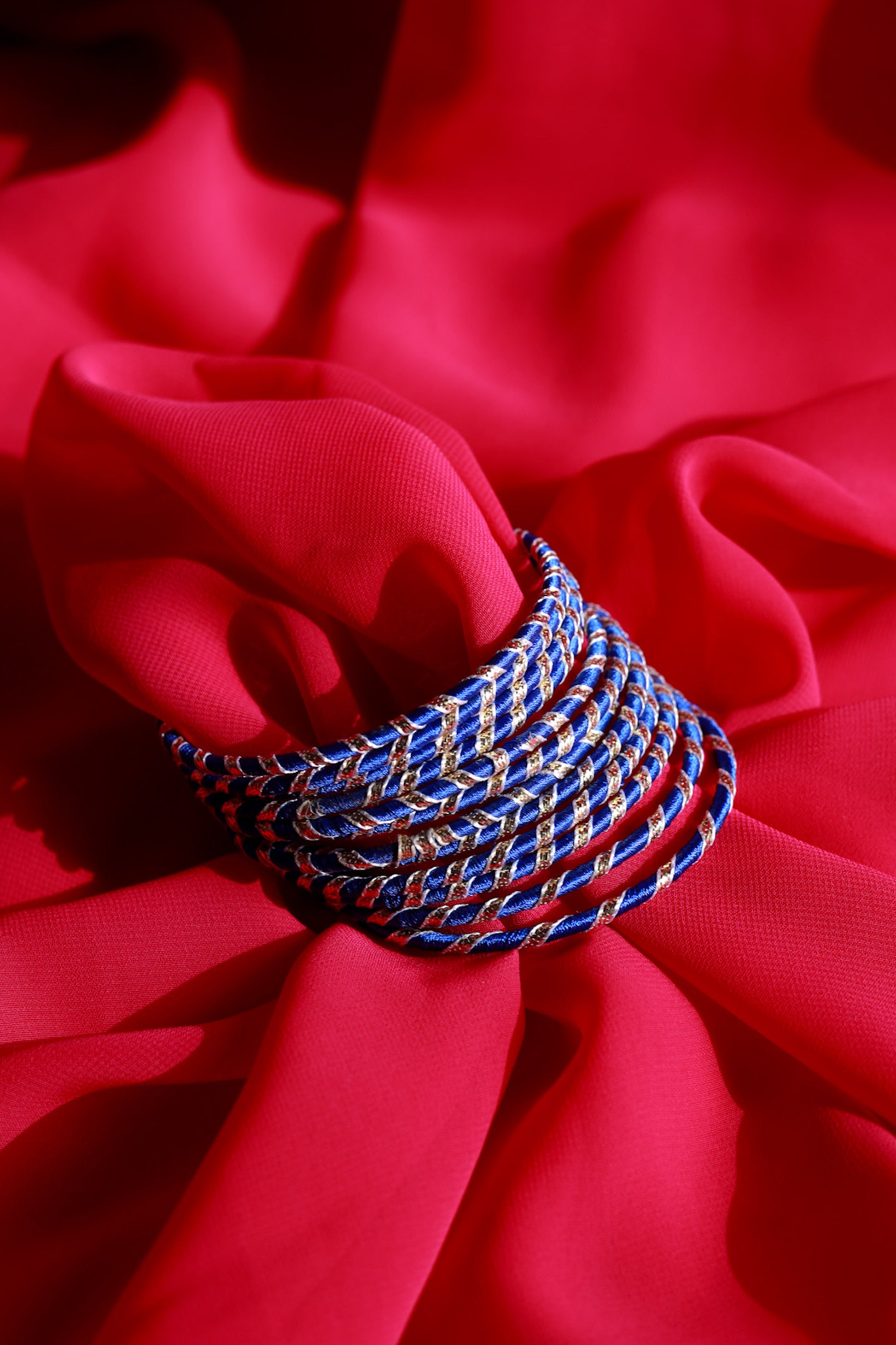 Celebrate the wedding season with these handcrafted bangles in bright colours made with silk thread and gotta. These bangles make for a unique gift and return gift option. Pair them with sarees, suits, lehengas and indo-western dresses to glam up the look.