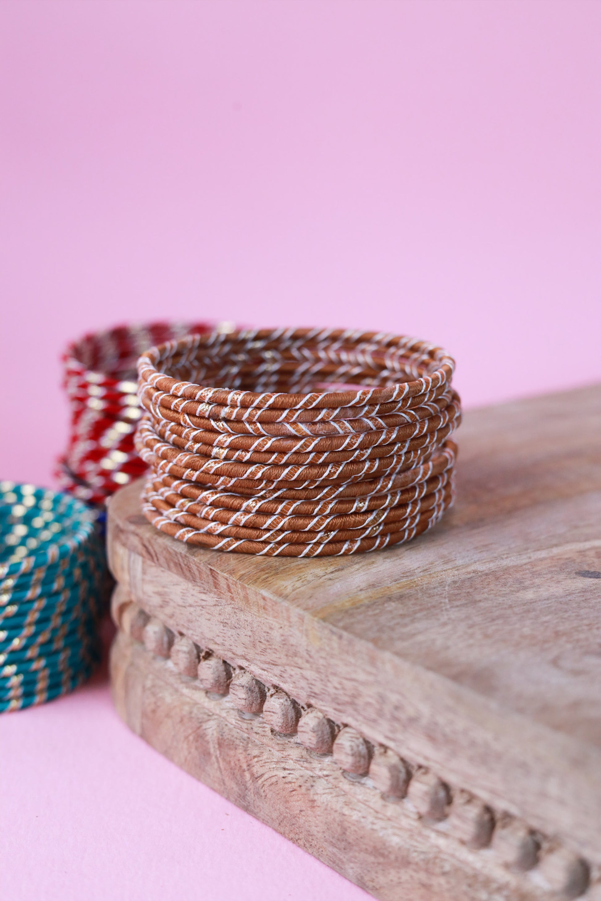 Add a rustic charm to your outfit with these lovely brown bangles. Elevate your celebrations with our handcrafted thread bangles, inspired by the festive spirit.