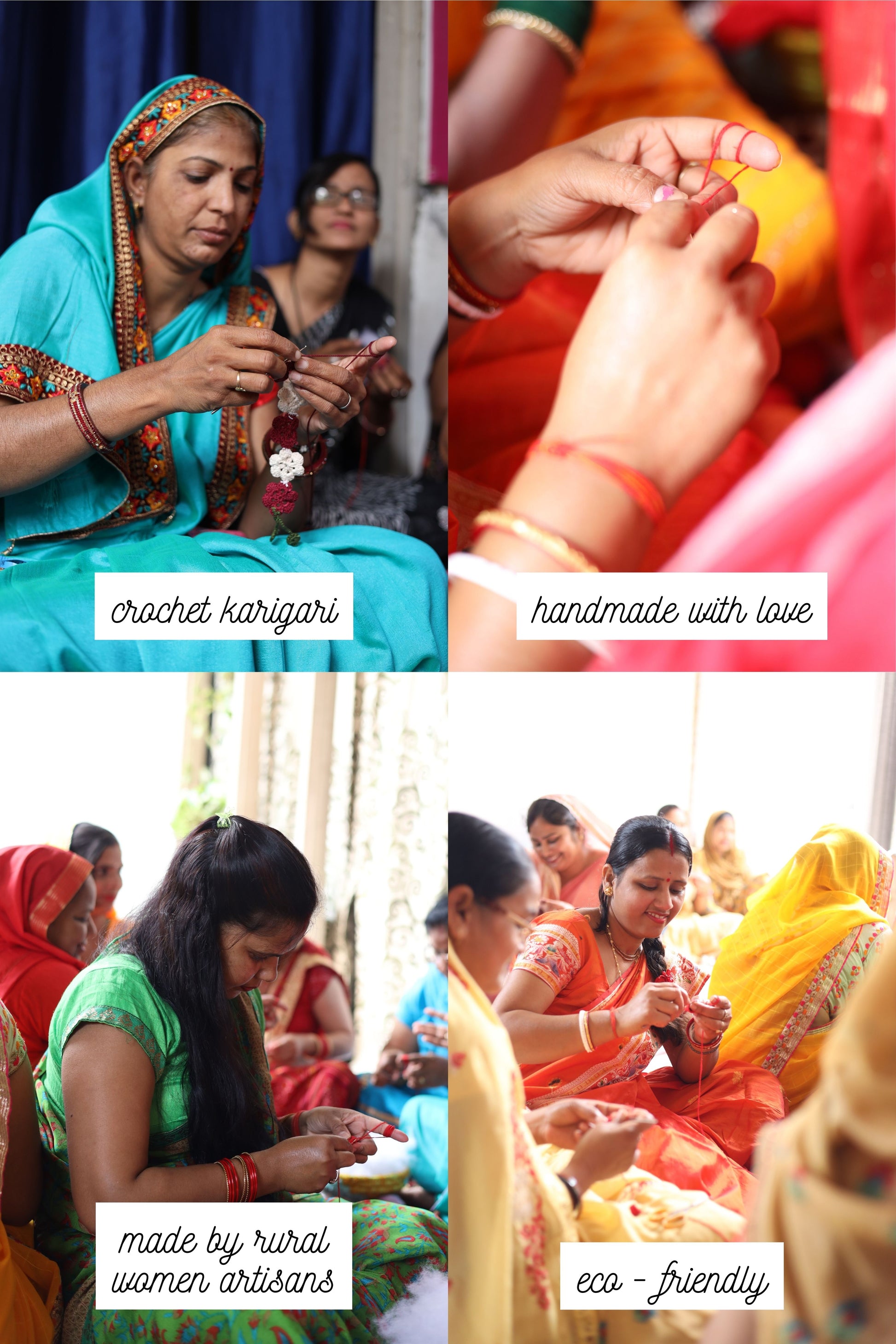 Each piece is handmade with love by women artisan in Manesar, Haryana (India). There might be a slight variation in colour, shape and size. Dry them in shade if wet.