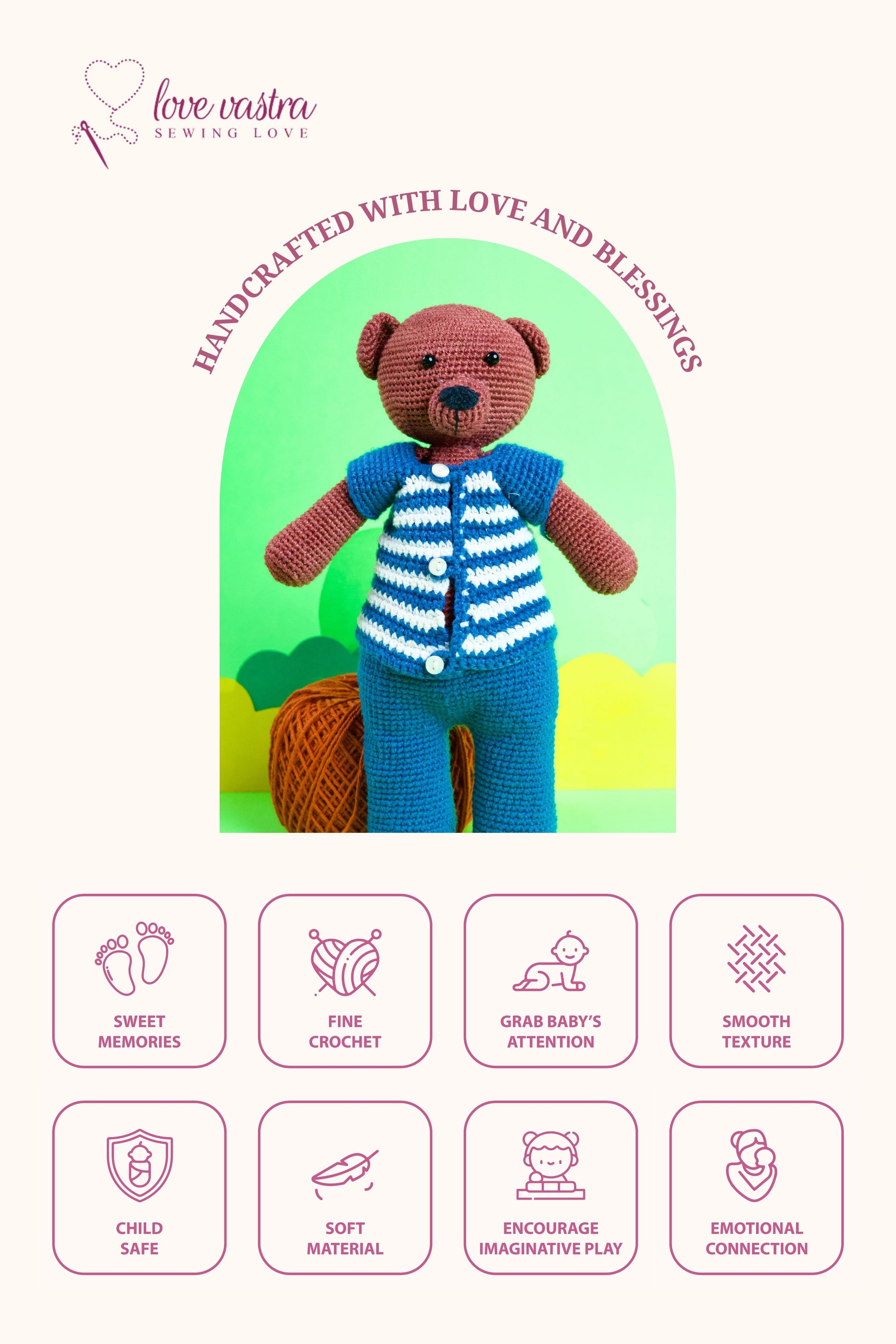 Introducing 'Giggly Bear'- a magical bear companion that will fill your little one's world with joy and blessings. Handcrafted with love, this whimsical friend is ready to embark on enchanting adventures together. Let the magic unfold.