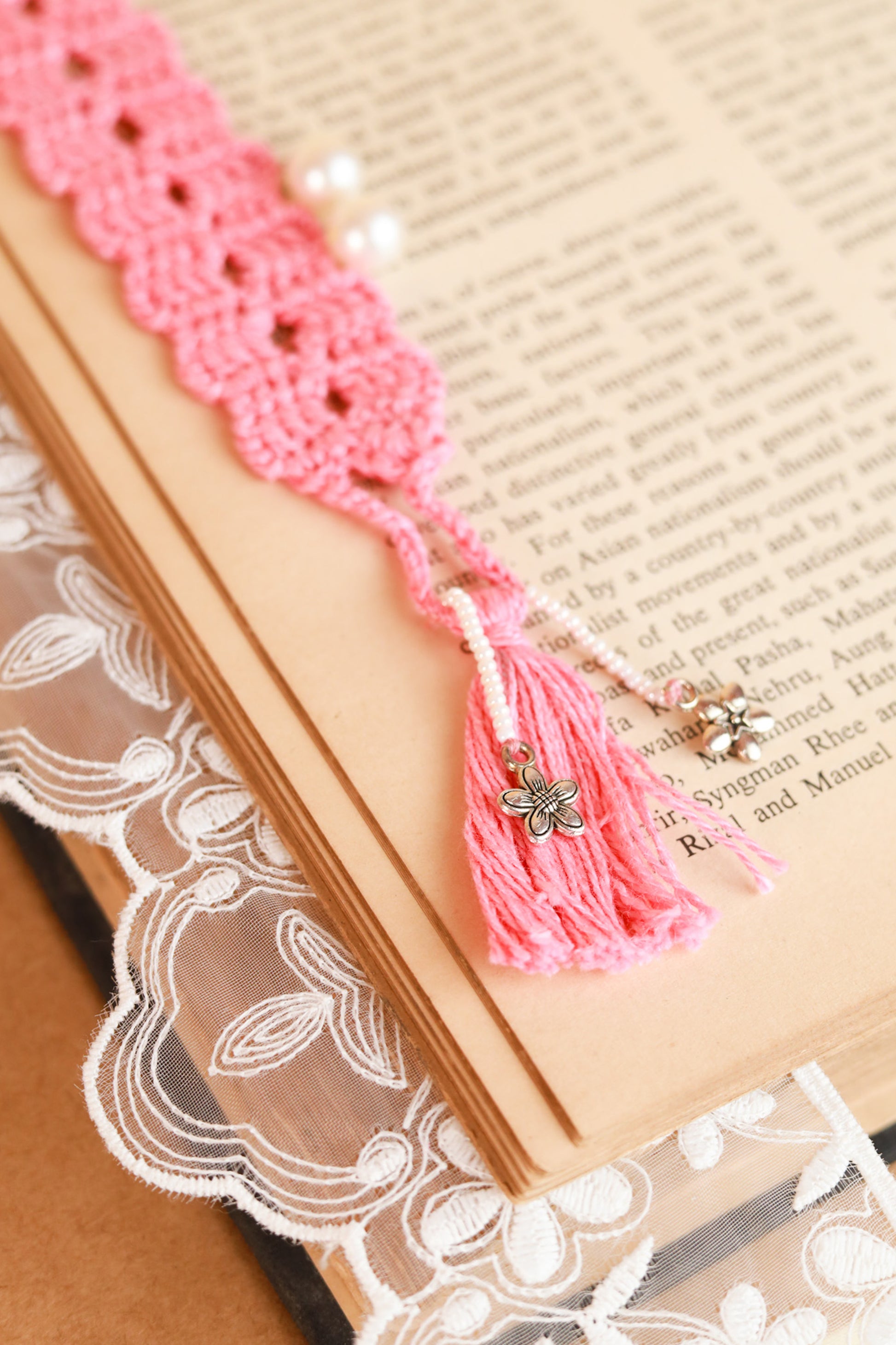 Adding a pop of pink to your reading journey with this elegant and beautiful laced bookmark.