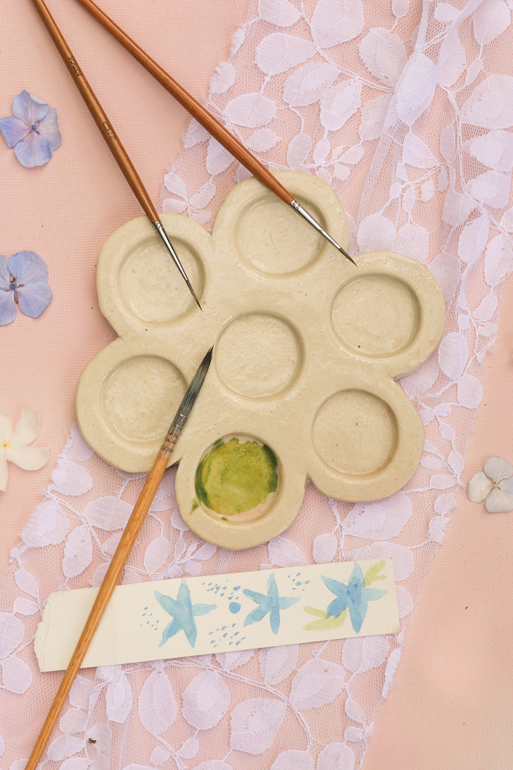 The ceramic palette is perfect for artists, professional painters, paint amateurs, art student and teachers, a great gift for your artist dost. Palette is made of eco-friendly stoneware clay, so it is very durable. Ideal for watercolour, gouache, acrylic, oil, tempera painting. These palettes are handcrafted and Hand painted by our artisans.