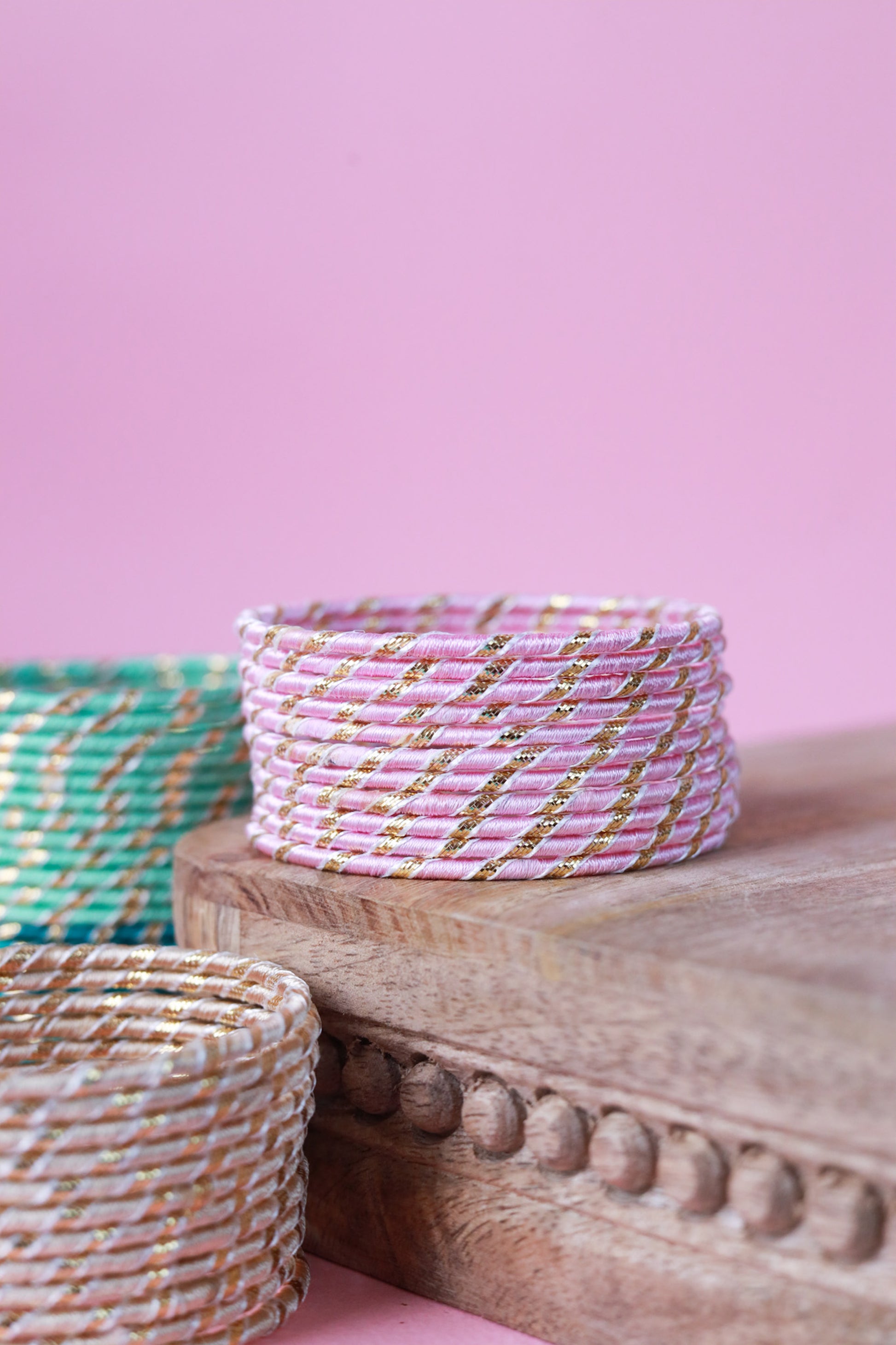 Celebrate the wedding season with these handcrafted bangles in bright colours made with silk thread and gotta. These bangles make for a unique gift and return gift option. Pair them with sarees, suits, lehengas and indo-western dresses to glam up the look.