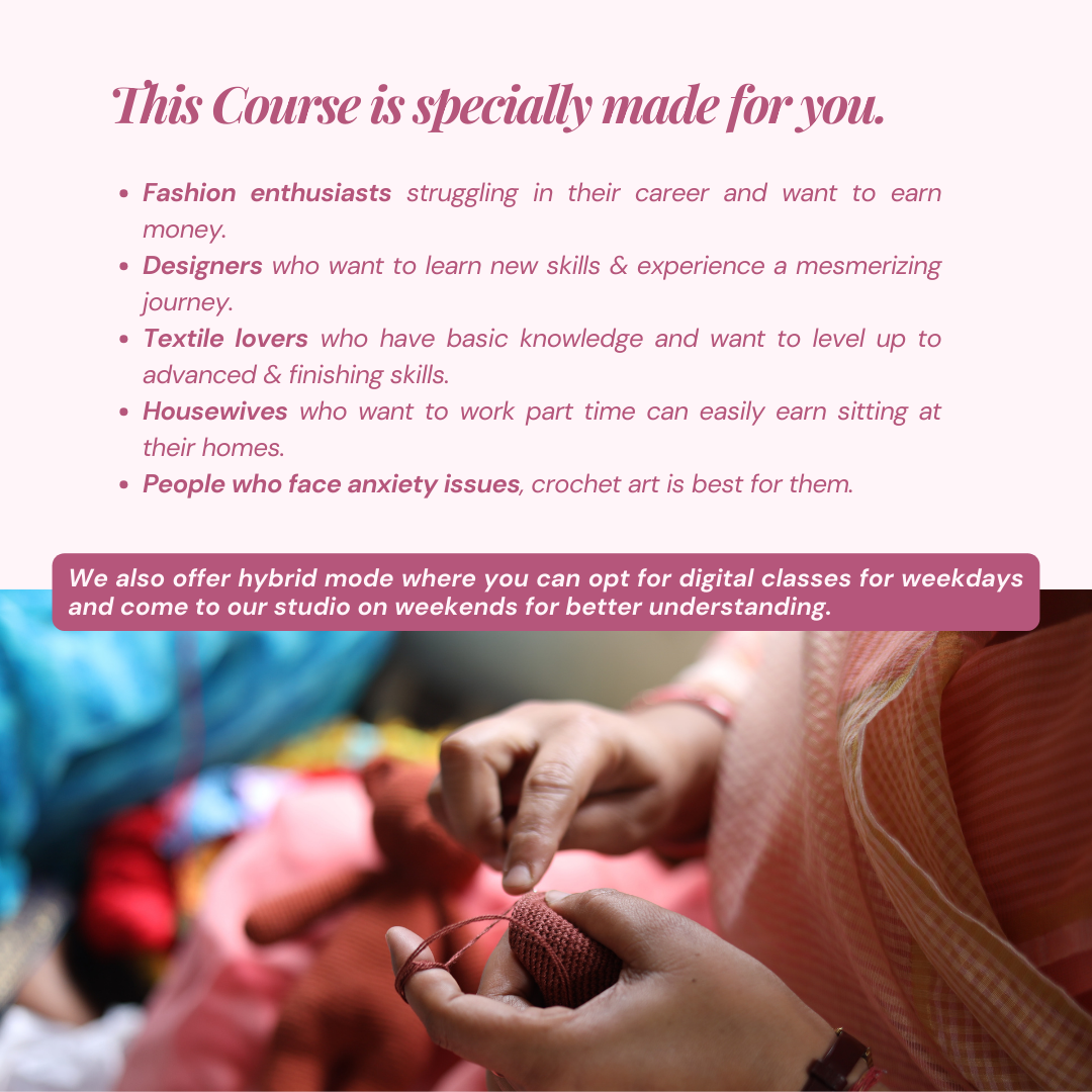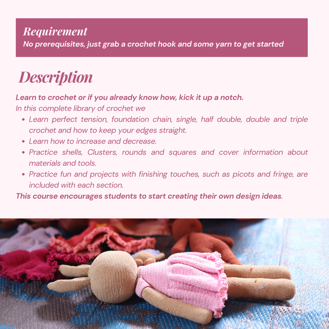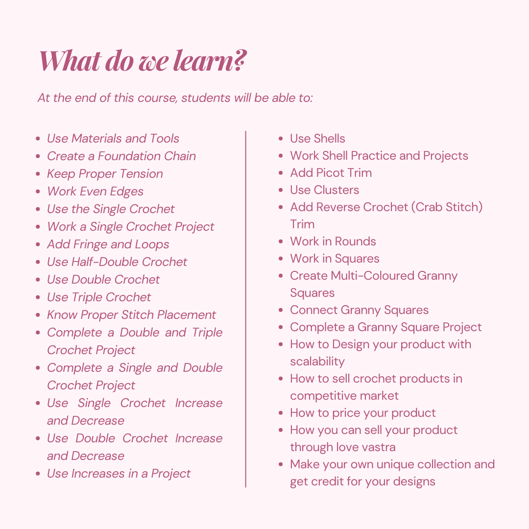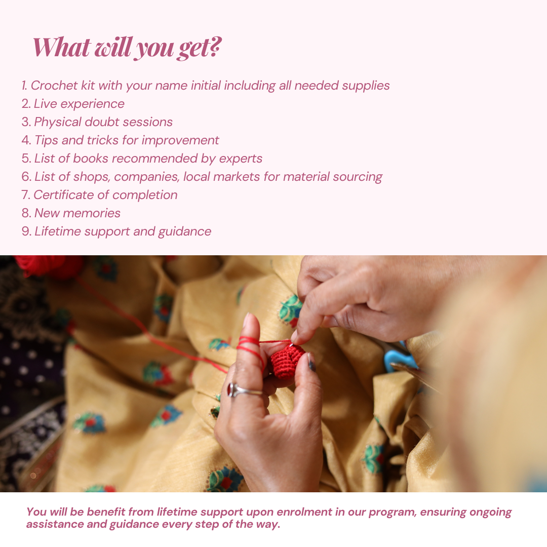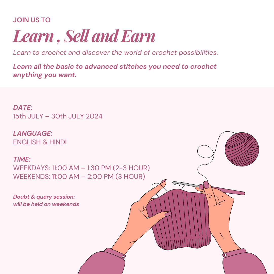 If you’d like to join us for this in-depth course to enhance your crochet skills then do register and join us for this course and we assure you that it would be a one-of-a-kind learning experience!