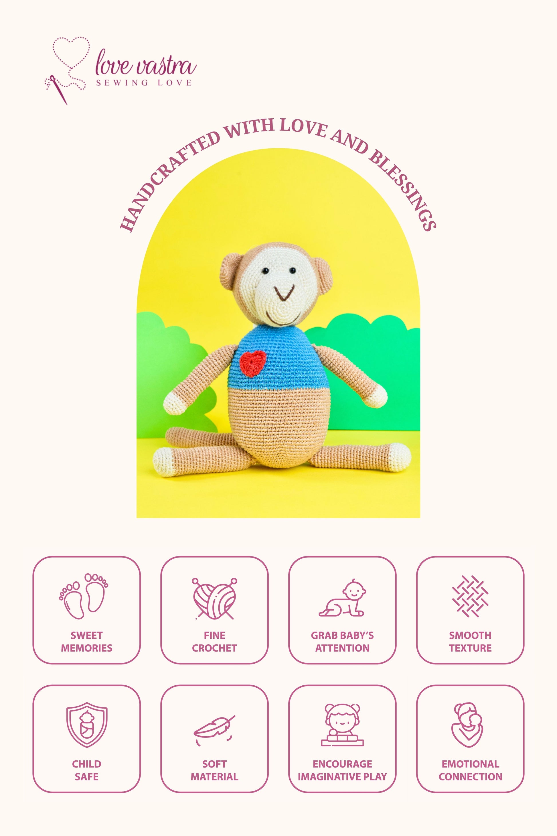 The ultimate monkey toy that will bring endless fun and laughter to your little one's playtime! Handcrafted with love, this cheeky monkey is ready to swing into action and join your child on exciting adventures!