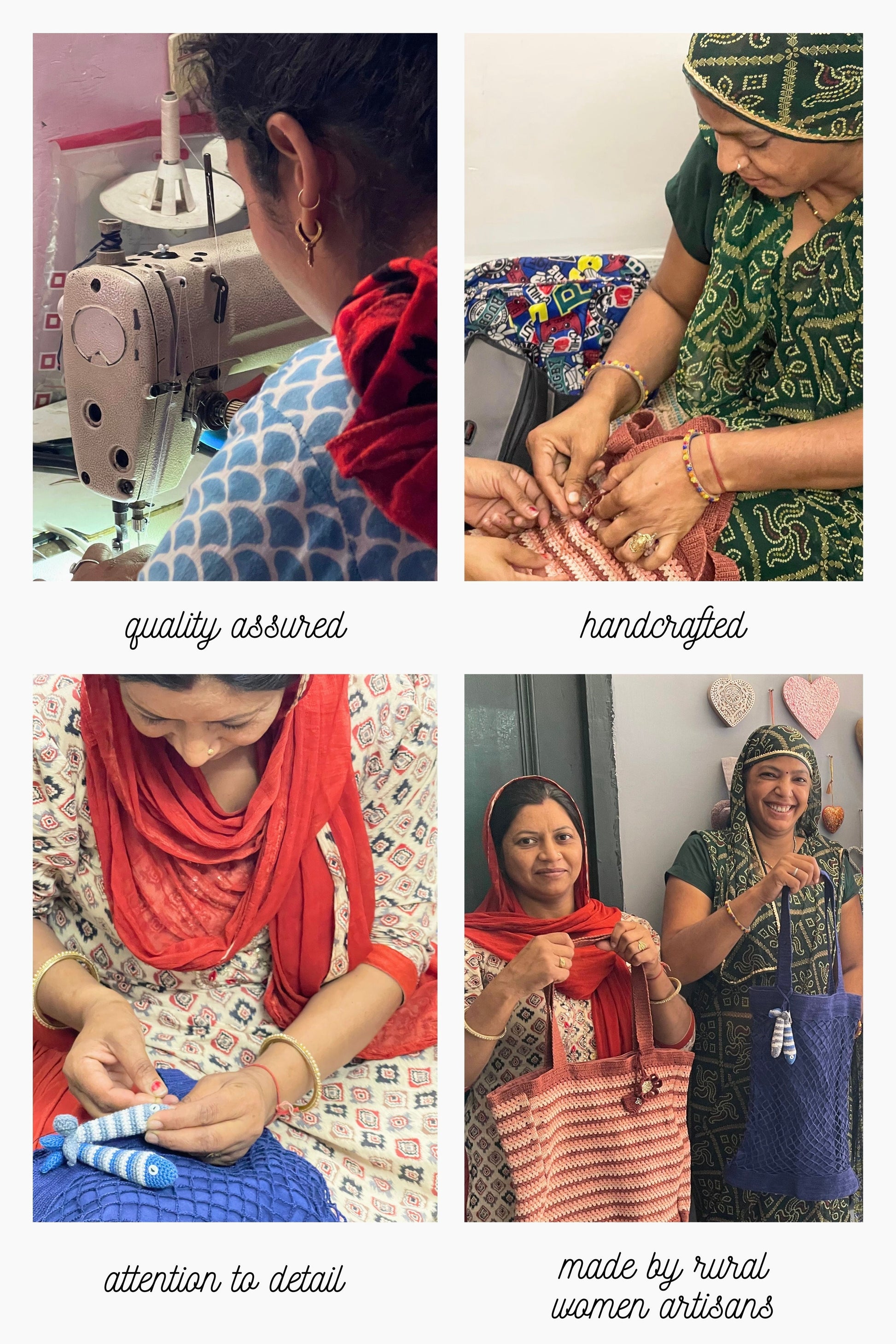 Each piece is handmade with love by women artisan in Manesar, Haryana (India).