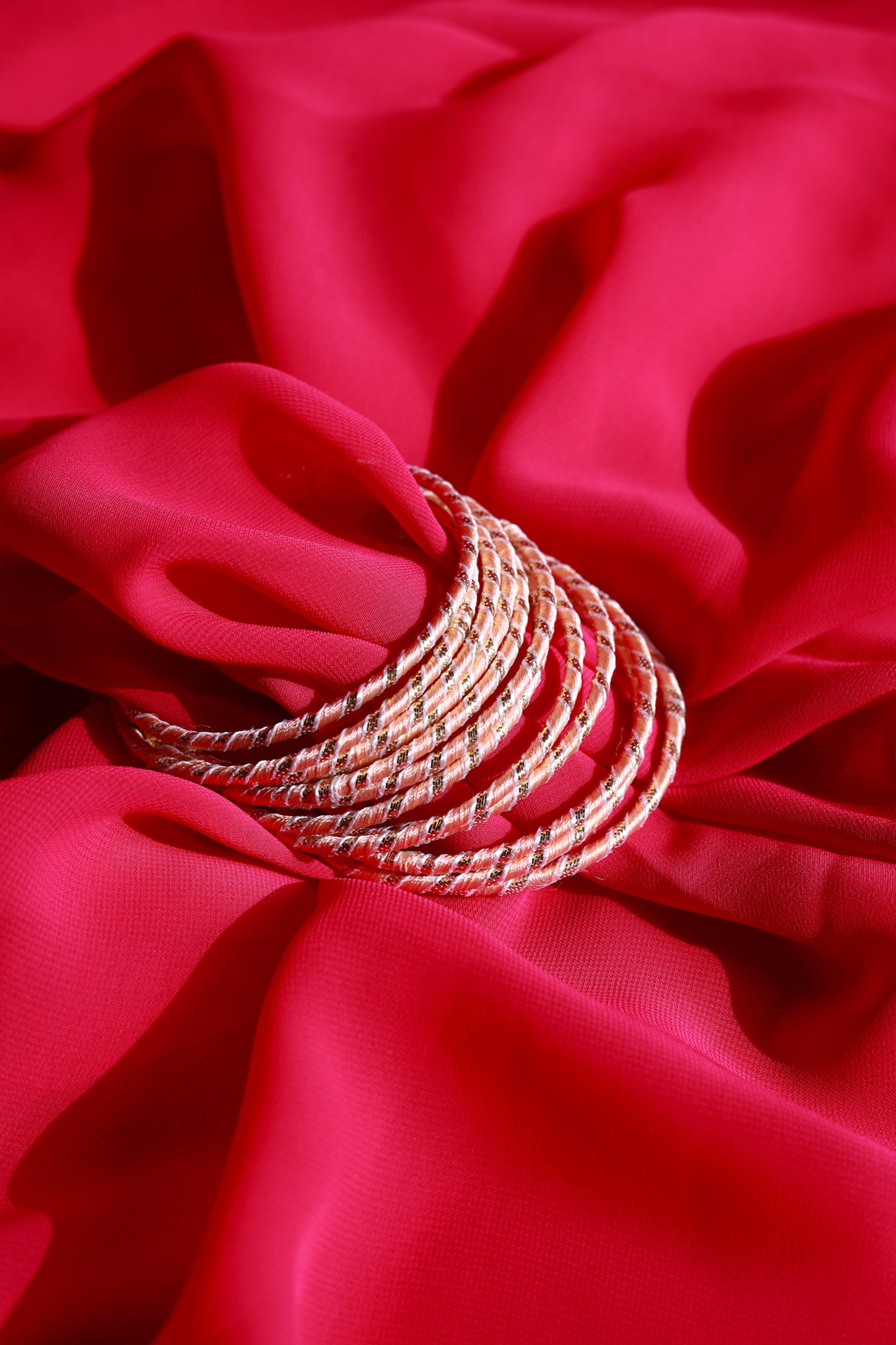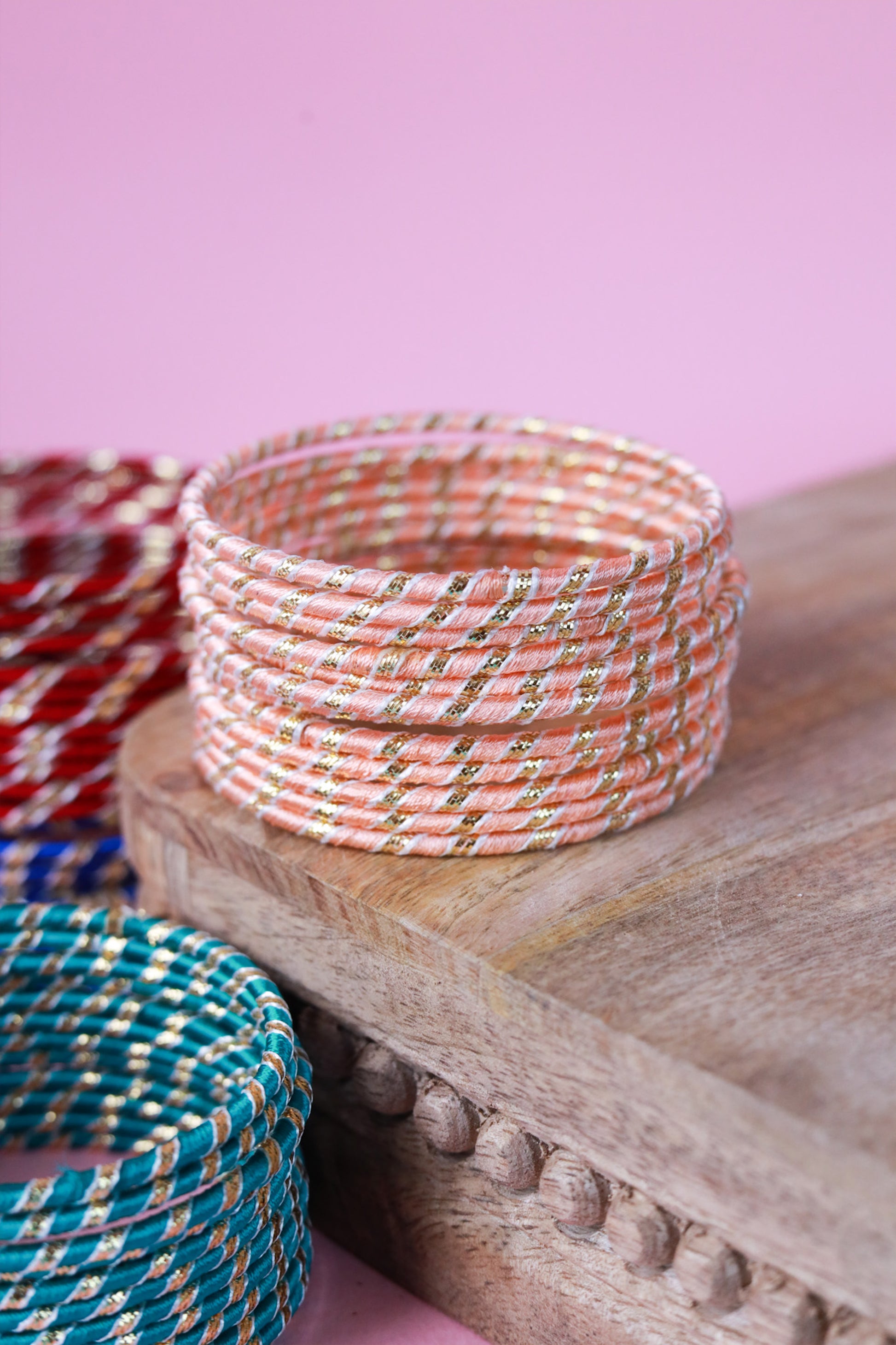 Celebrate the wedding season with these handcrafted bangles in bright colours made with silk thread and gotta. These bangles make for a unique gift and return gift option. Pair them with sarees, suits, lehengas and indo-western dresses to glam up the look.