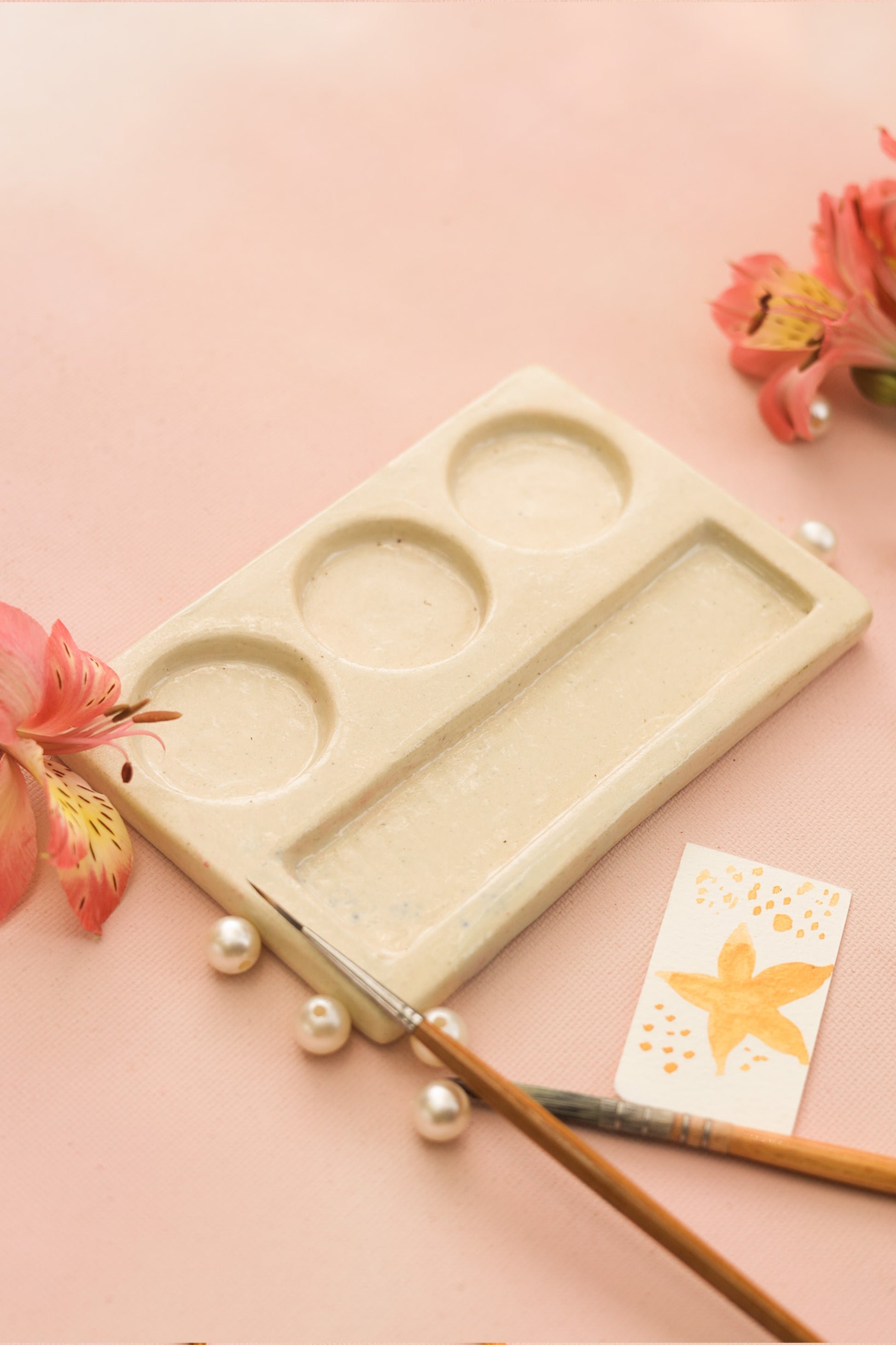 The ceramic palette is perfect for artists, professional painters, paint amateurs, art student and teachers, a great gift for your artist dost. Palette is made of eco-friendly stoneware clay, so it is very durable. Ideal for watercolour, gouache, acrylic, oil, tempera painting. These palettes are handcrafted and Hand painted by our artisans.