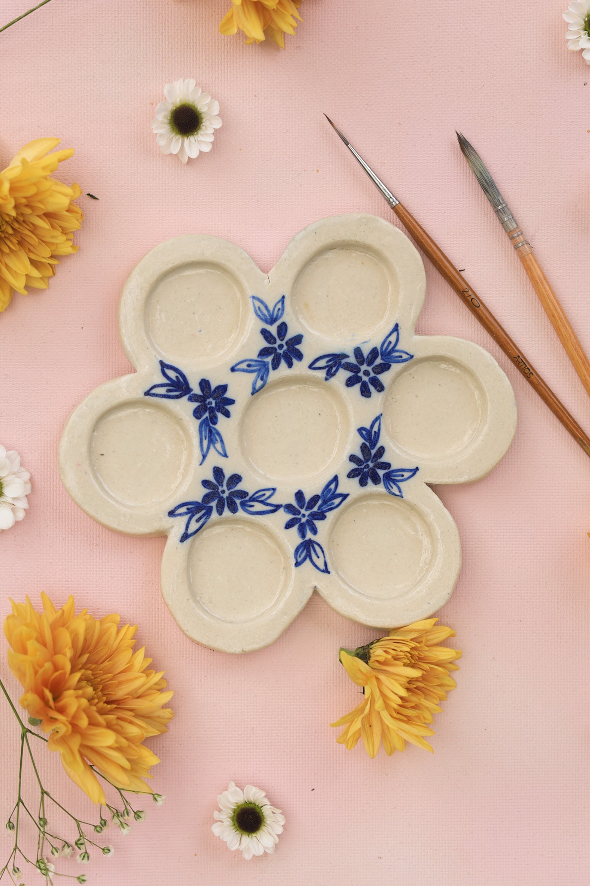 The ceramic palette is perfect for artists, professional painters, paint amateurs, art student and teachers, a great gift for your artist dost. Palette is made of eco-friendly stoneware clay, so it is very durable. Ideal for watercolour, gouache, acrylic, oil, tempera painting. These palettes are handcrafted and Hand painted by our artisans.