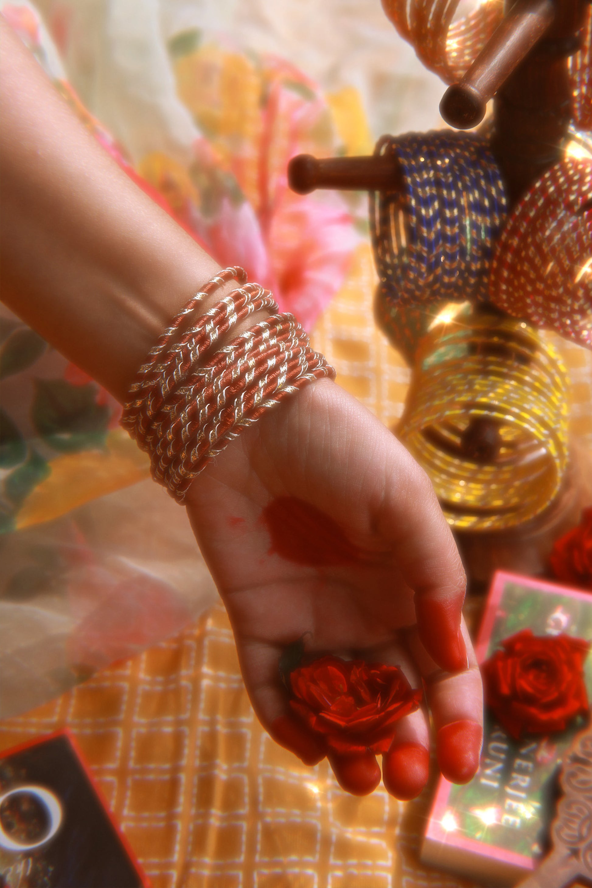 Celebrate the wedding season with these handcrafted bangles in bright colours made with silk thread and gotta. These bangles make for a unique gift and return gift option. Pair them with sarees, suits, lehengas and indo-western dresses to glam up the look.