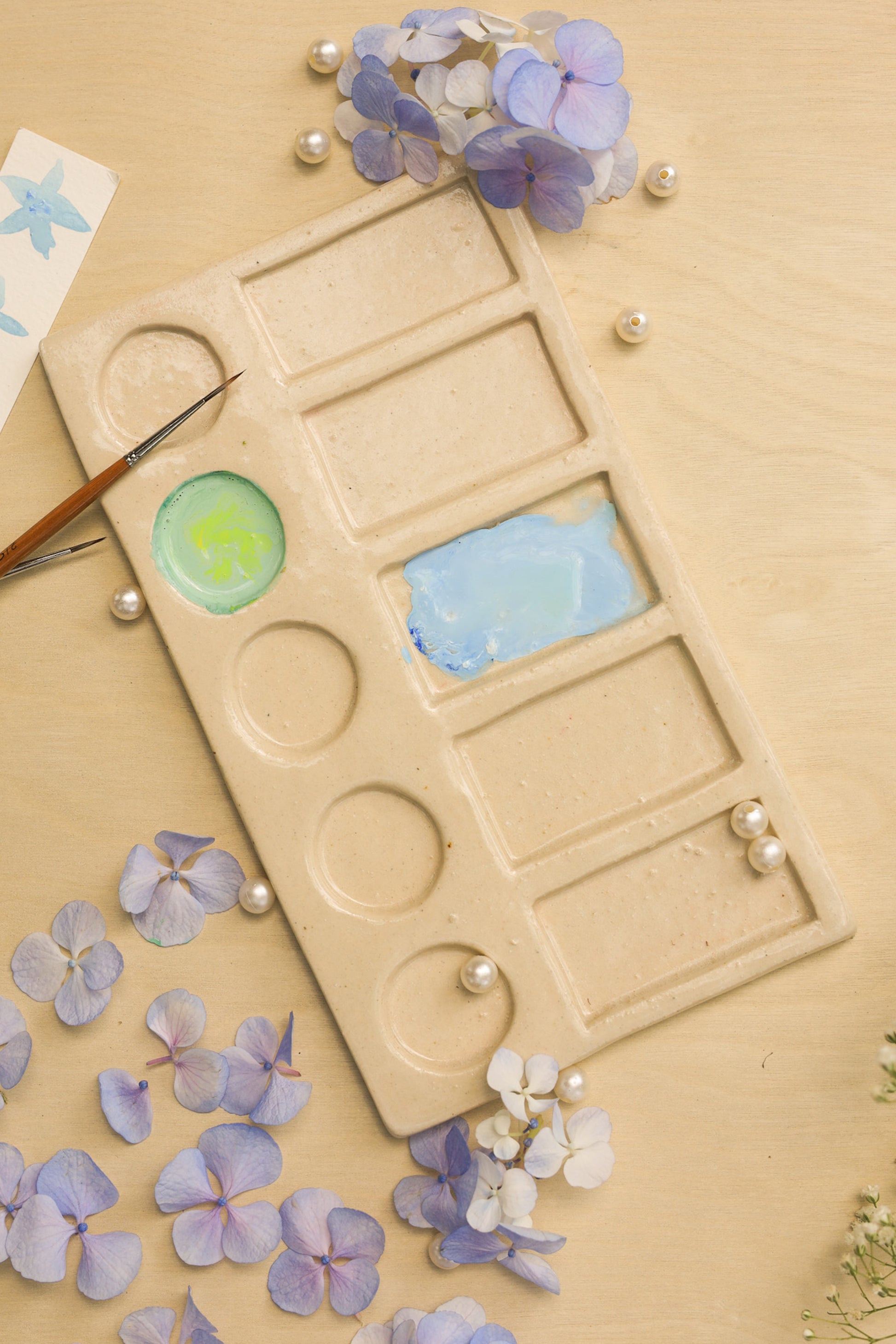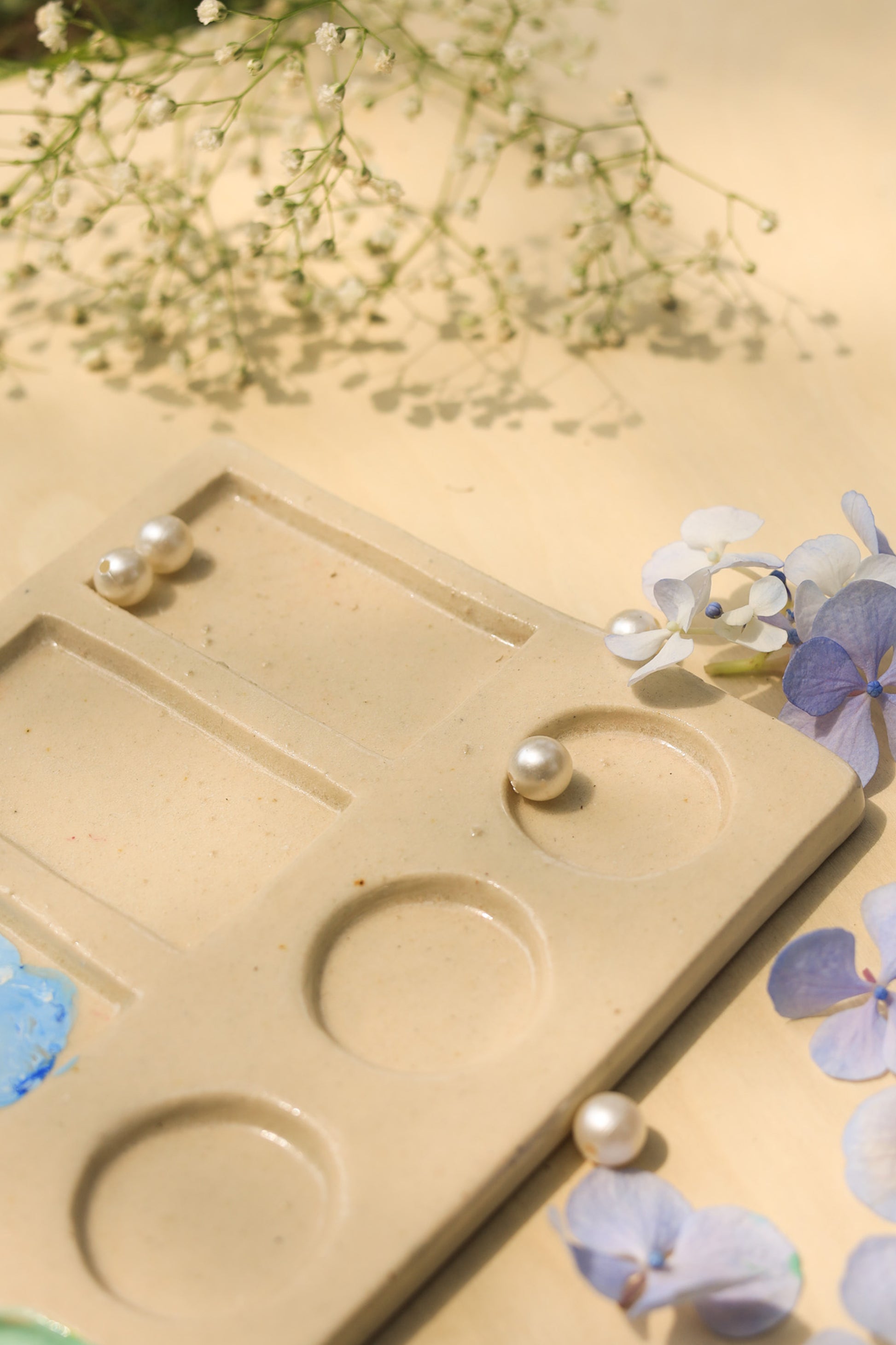 The ceramic palette is perfect for artists, professional painters, paint amateurs, art student and teachers, a great gift for your artist dost. Palette is made of eco-friendly stoneware clay, so it is very durable. Ideal for watercolour, gouache, acrylic, oil, tempera painting. These palettes are handcrafted and Hand painted by our artisans.